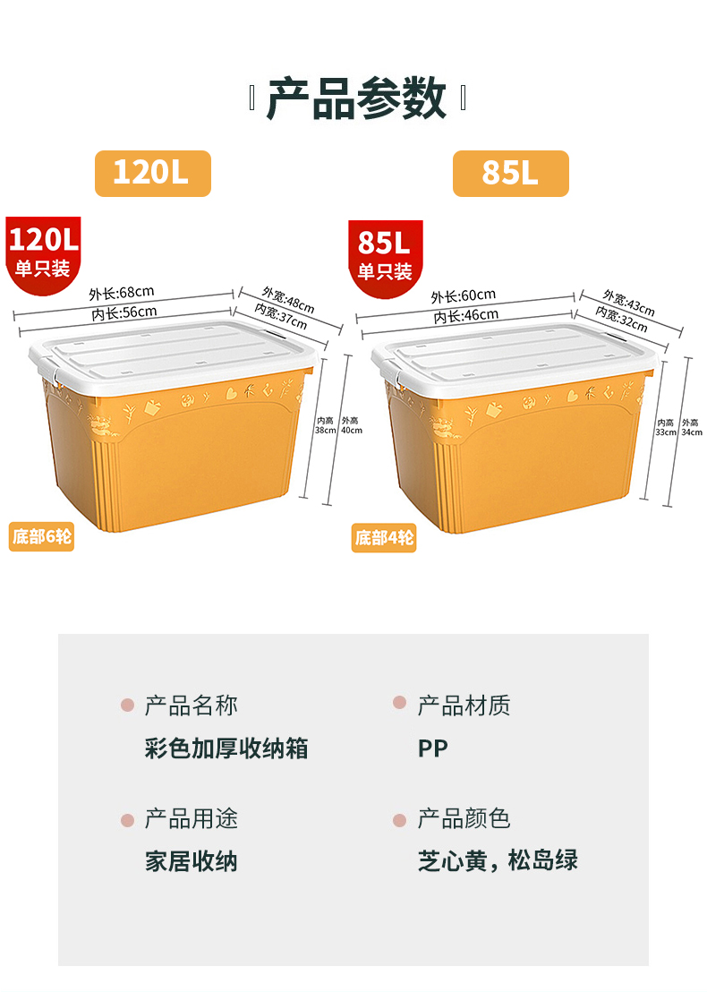 访客 收纳箱 衣服被子收纳箱特大号【120L 两只装】绿+橙 玩具储物搬家箱 打包塑料整理箱
