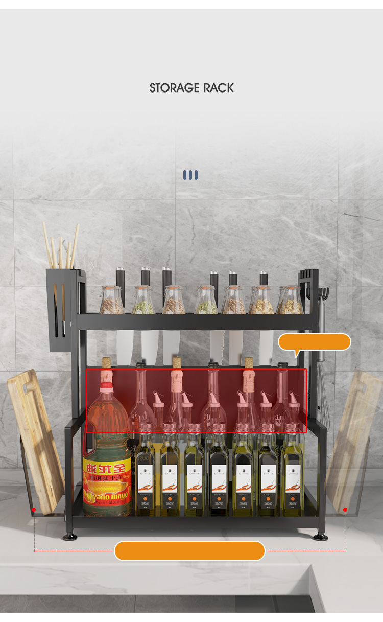 喻品 厨房置物架落地调料架收纳台面储物架刀架桌面调味架厨具用品多功能架子 ZW36双层40cm