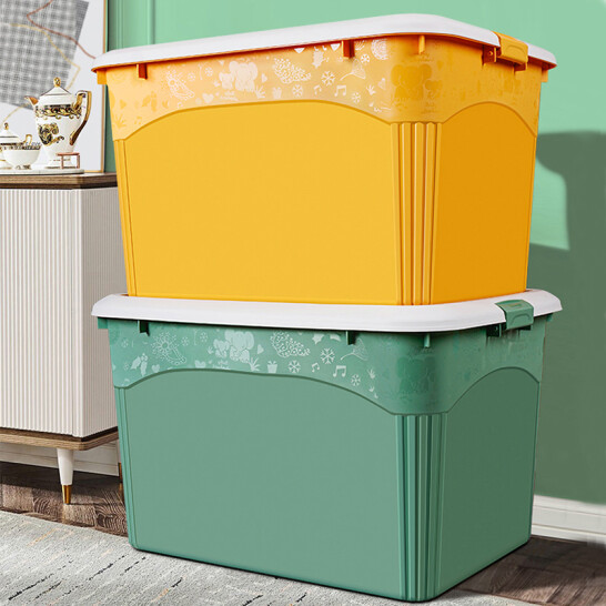 访客 收纳箱 衣服被子收纳箱特大号【120L 两只装】绿+橙 玩具储物搬家箱 打包塑料整理箱