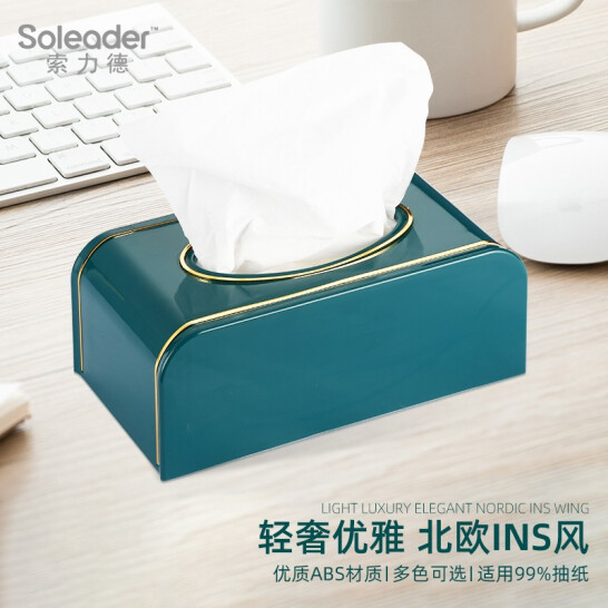 索力德纸巾盒抽纸盒家用客厅餐厅茶几简约北欧风收纳创意家居用品桌面抽纸盒家用纸巾盒轻奢ins创意简约 祖母绿-金边