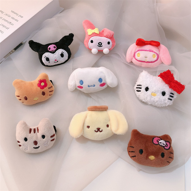 可爱卡通立体毛绒发夹秋冬少女碎发刘海夹三丽鸥毛绒公仔发卡发饰