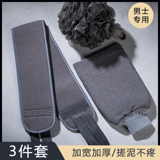贝瑟斯 搓澡巾男【加厚3件套】搓澡神器粗砂洗澡巾搓澡巾沐浴球拉背条搓澡手套强力搓泥搓灰神器成人挫后背