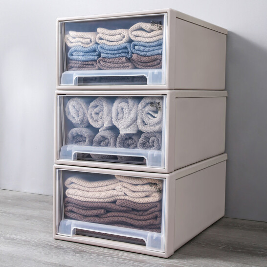 凡高(VENGO) 收纳箱 抽屉式收纳柜 40L带滑轮3个装特大号透明塑料衣物整理柜 床底储物柜