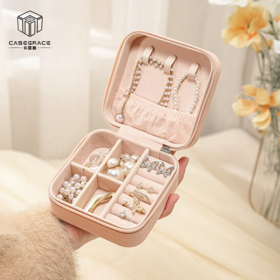 卡瑟格 首饰收纳盒小精致便携项链戒指耳饰耳环耳钉饰品首饰盒 裸粉