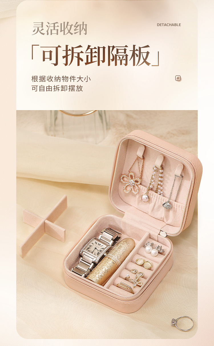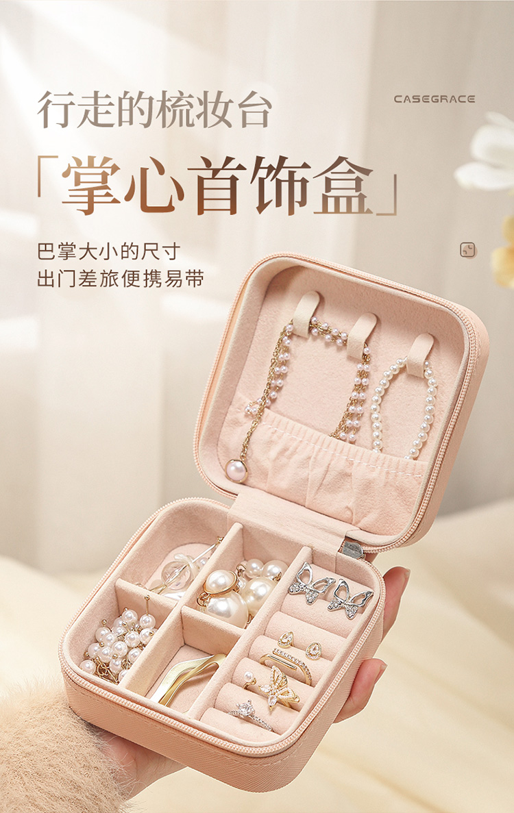 卡瑟格 首饰收纳盒小精致便携项链戒指耳饰耳环耳钉饰品首饰盒 裸粉