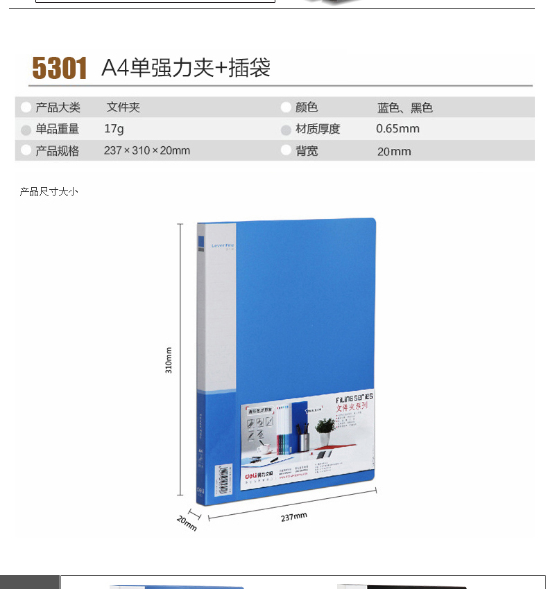 文件夹资料夹整理夹收纳夹 单强力夹+插袋商务