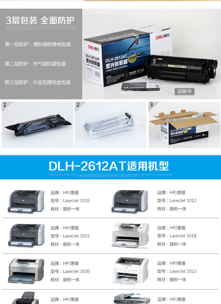 硒鼓激光打印机碳粉盒适用1010/1012/1015/1018/1020/1022/3015/3020/3030/3050/3050z/3052