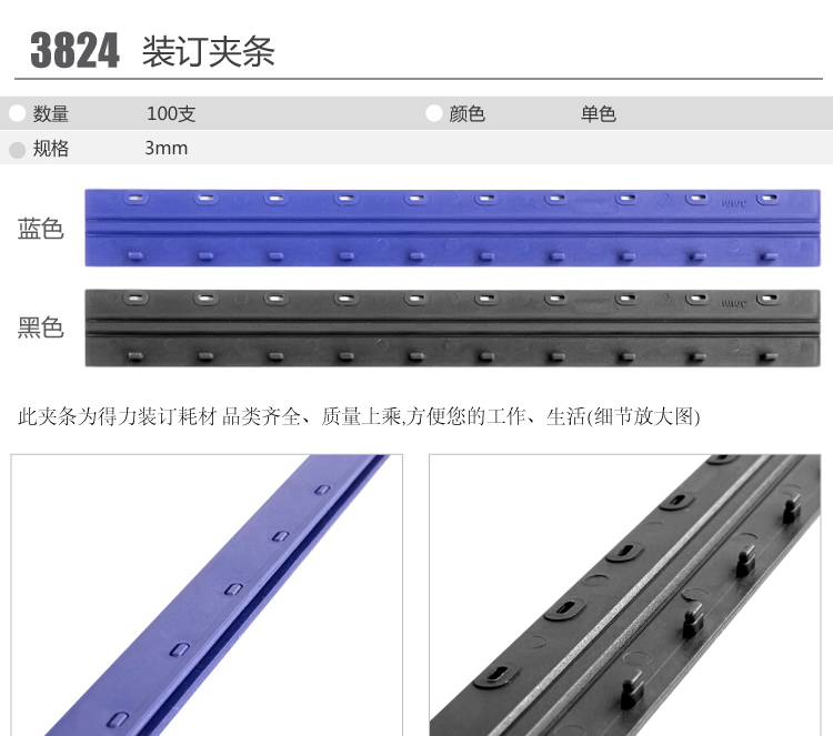 装订夹条 办公装订耗材 装订机耗材铆管 装订压条 压边条规格3mm(100支/盒)